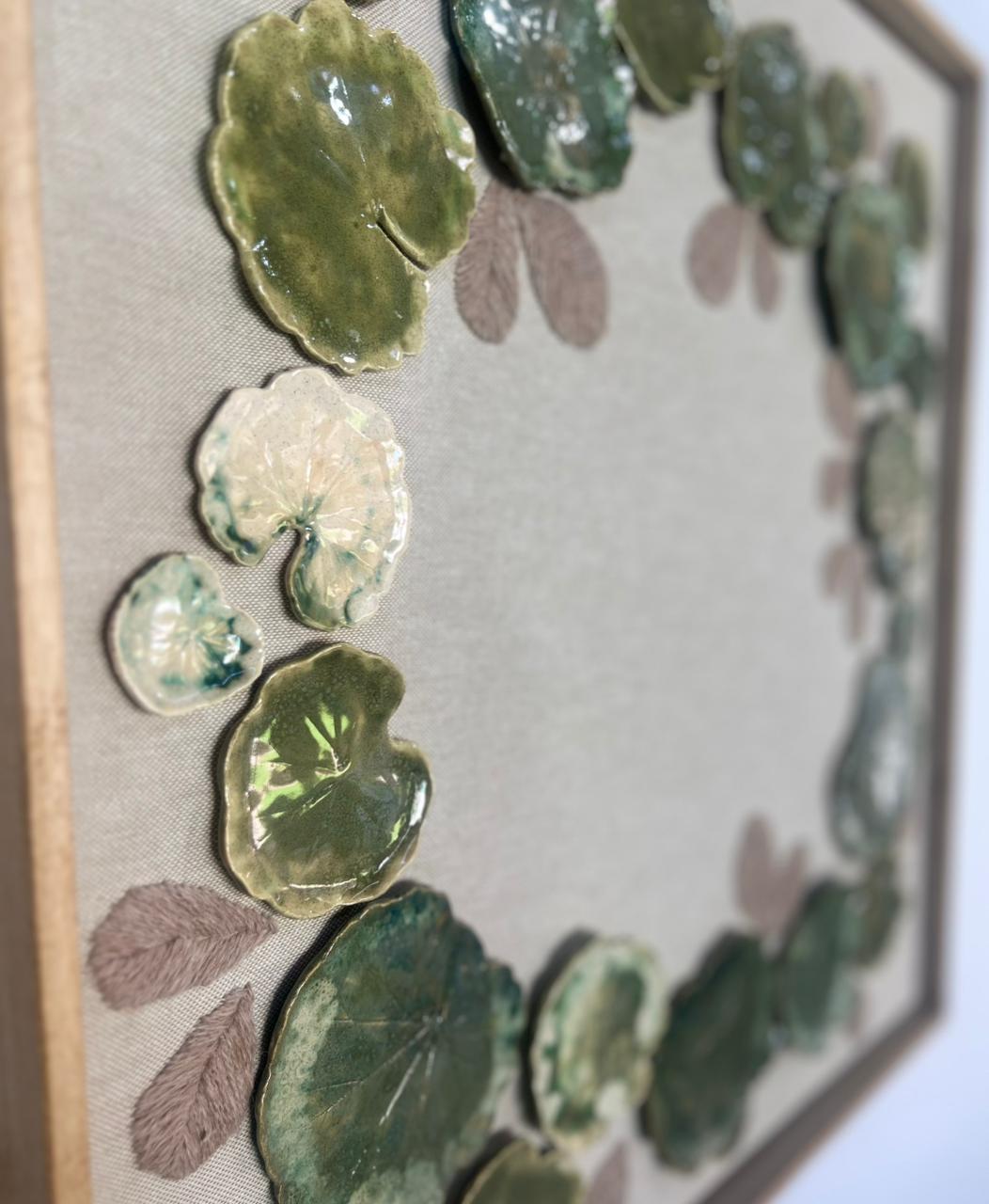 Cerámica y bordado sobre soporte de telas naturales