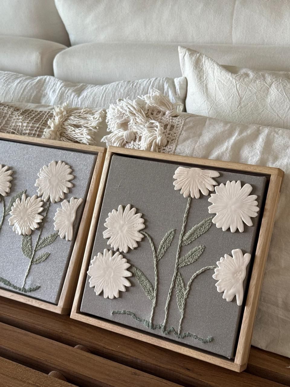 Cerámica y bordado sobre soporte de telas naturales