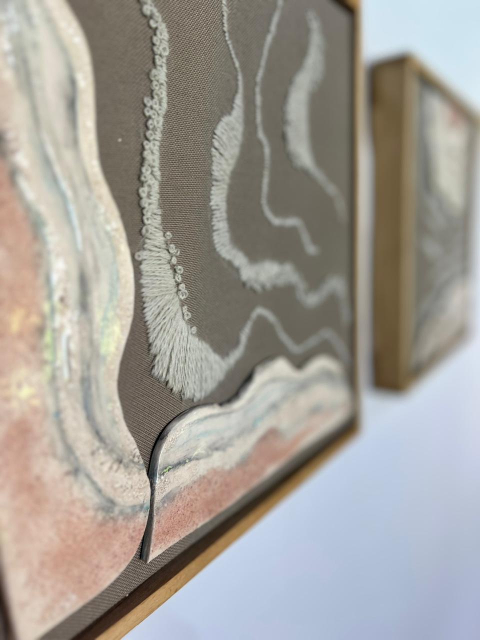 Cerámica y bordado sobre soporte de telas naturales